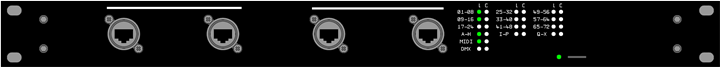 The TosCAT has 8/16/24 optical interfaces to allow a total of 32/64/96 audio channels, including DMX, to travel down a single CAT5.
